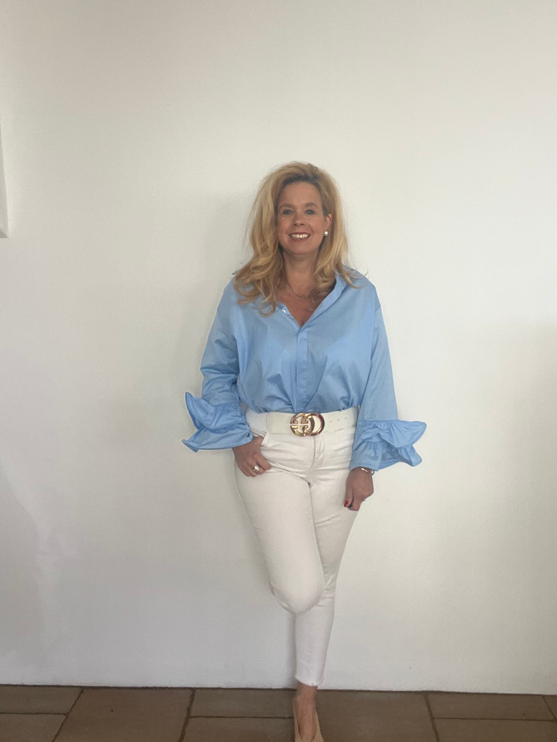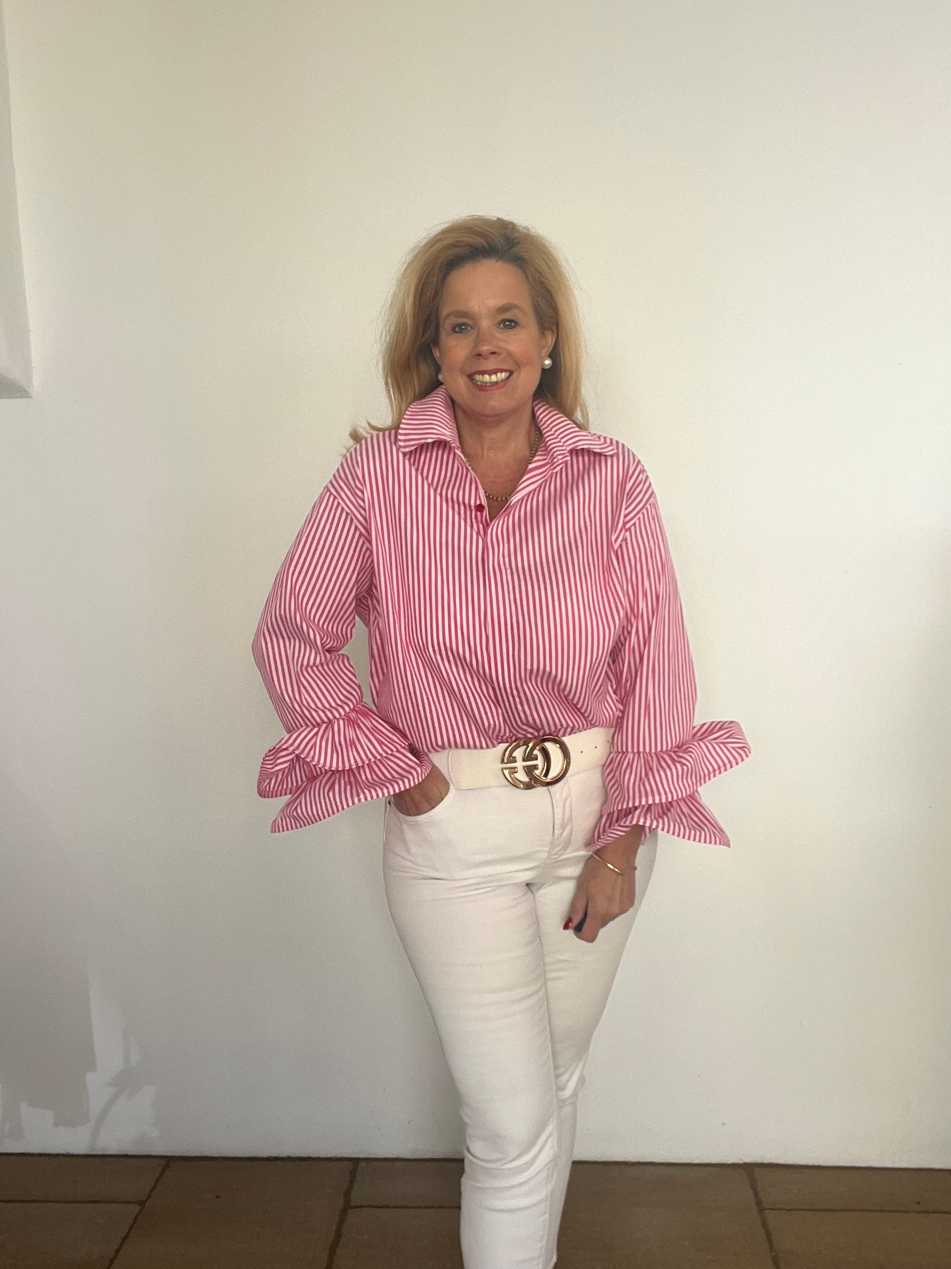 Tolle Bluse, oversize mit extravaganter Doppetmanschette, die, Dank eines festen Bandes immer die Form behalten.