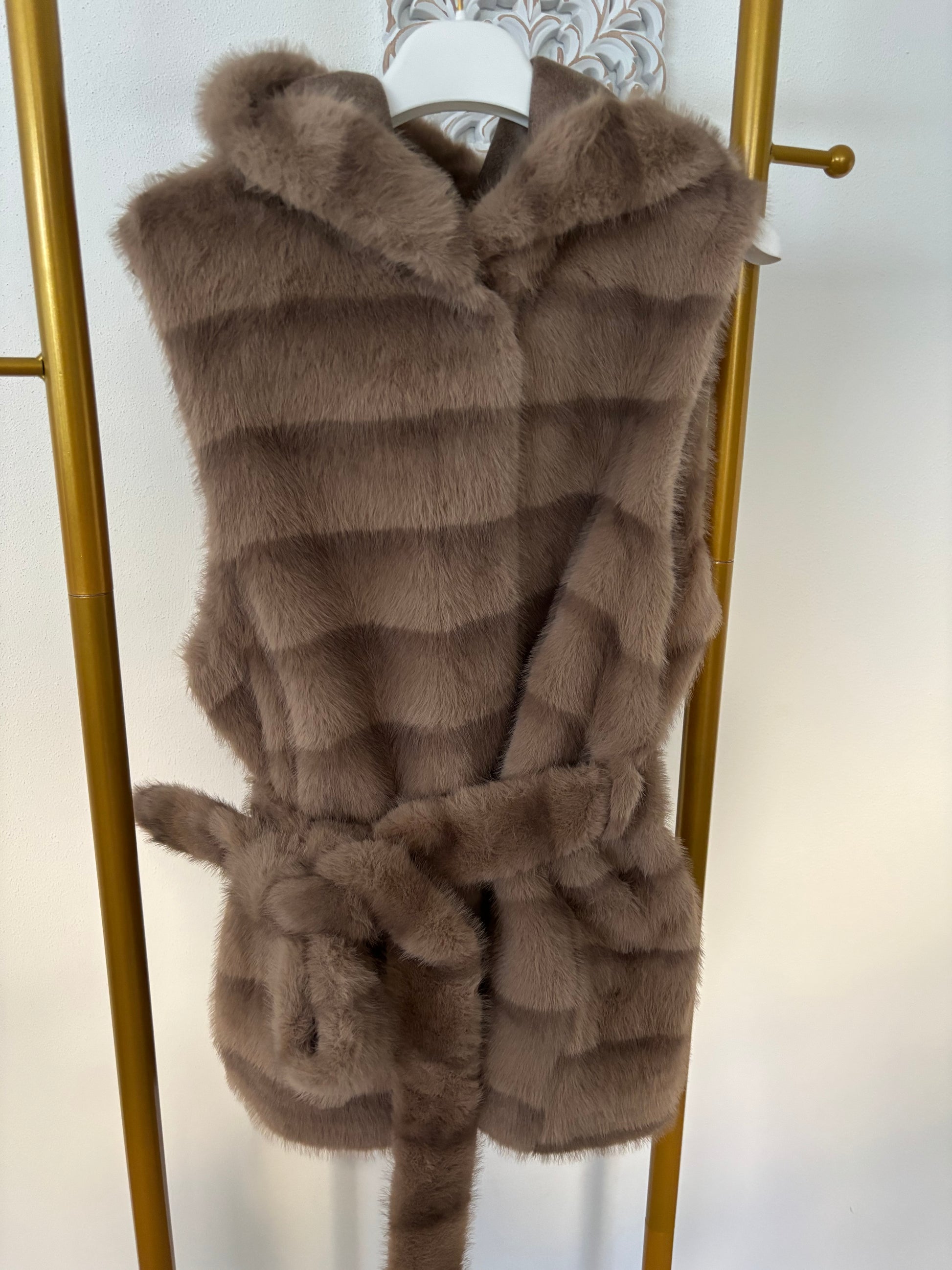 Mitgeliefert wird ein passender Pelzgürtel, der der Weste nochmals einen stylischen Twist gibt.