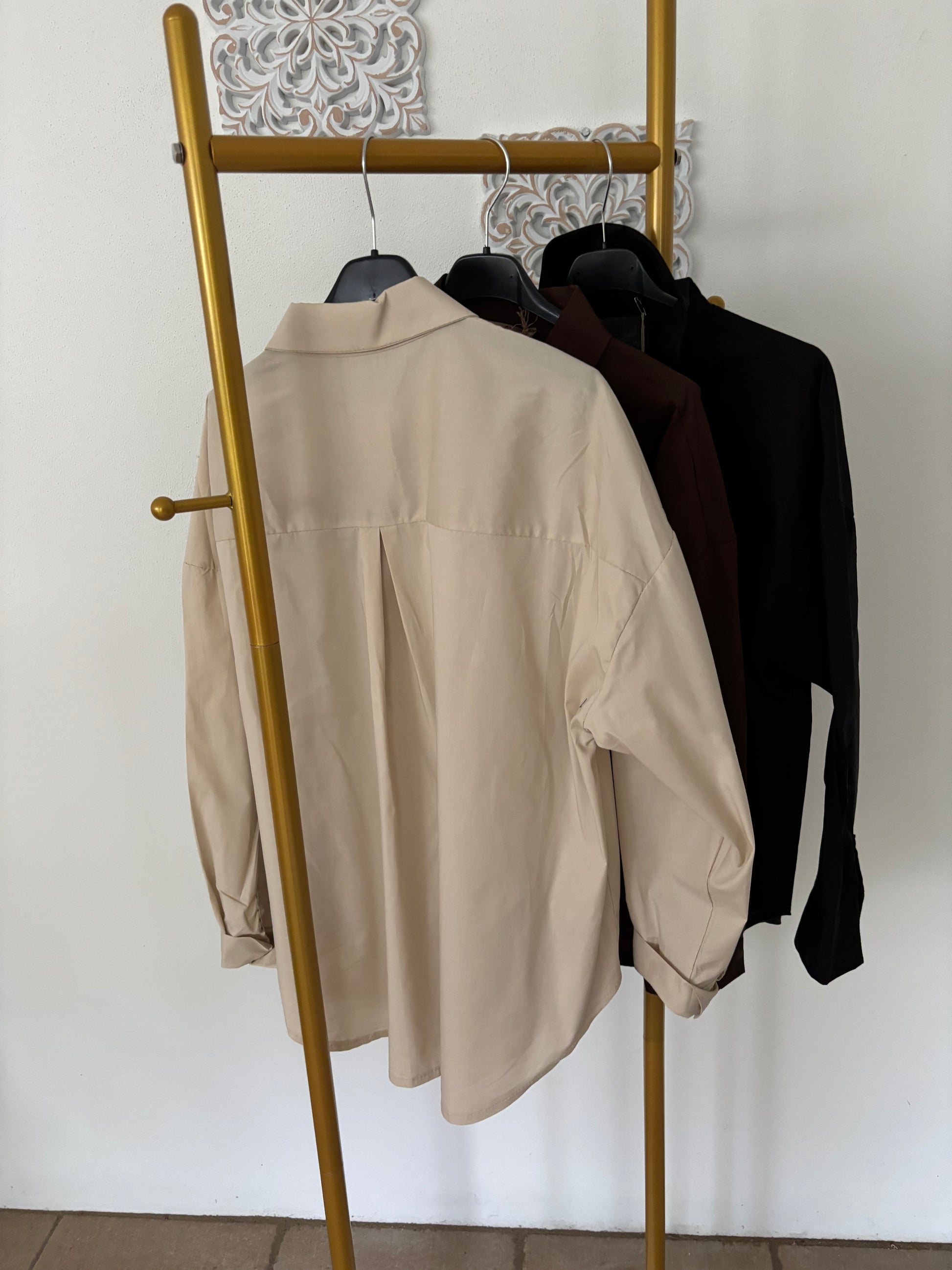 Klassische Hemdbluse mit verdeckter Knopfleiste in verschiedenen Farben.