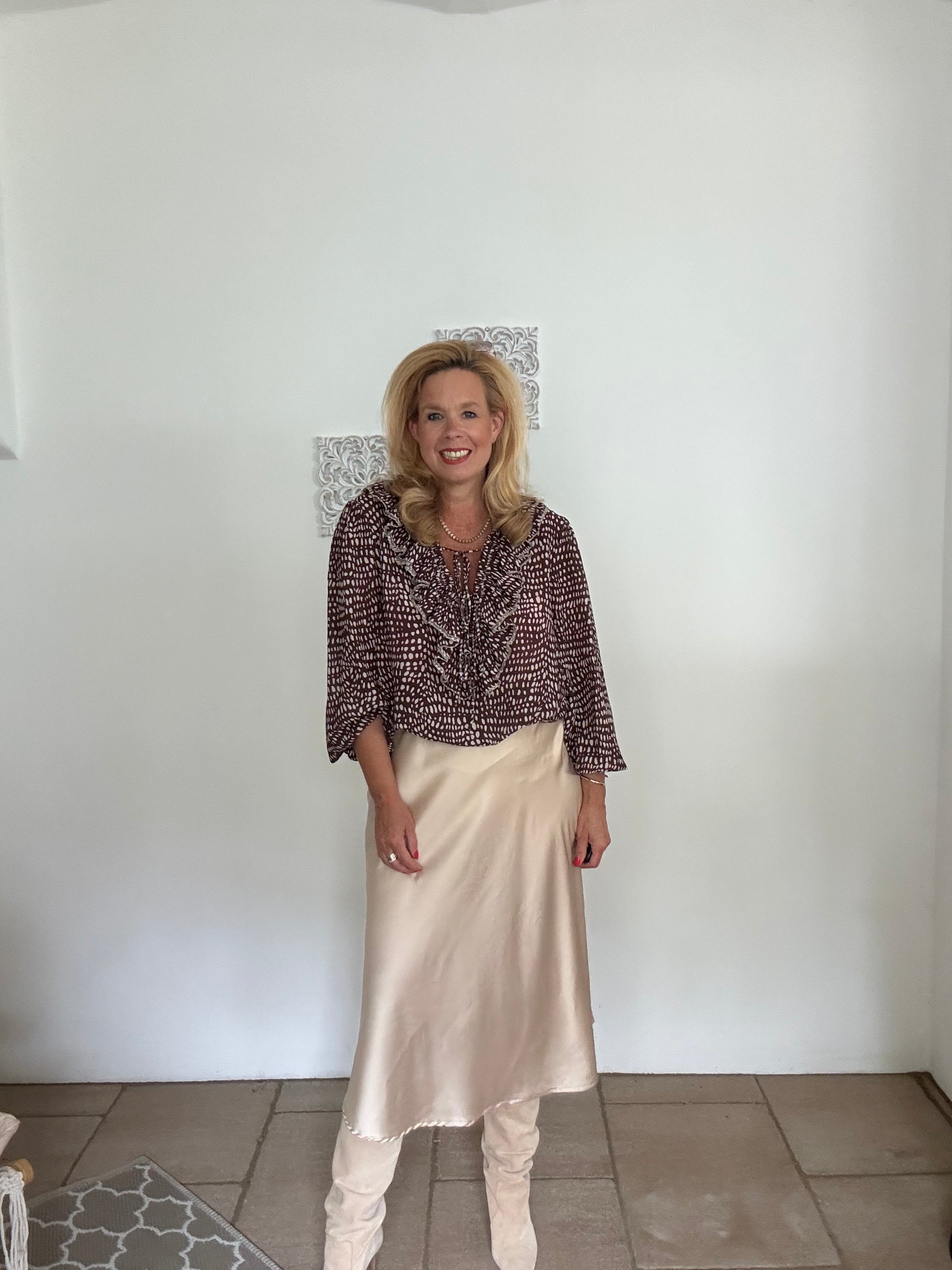 Die Bluse besticht mit ihren neuen aktuellen Herbstfarben.