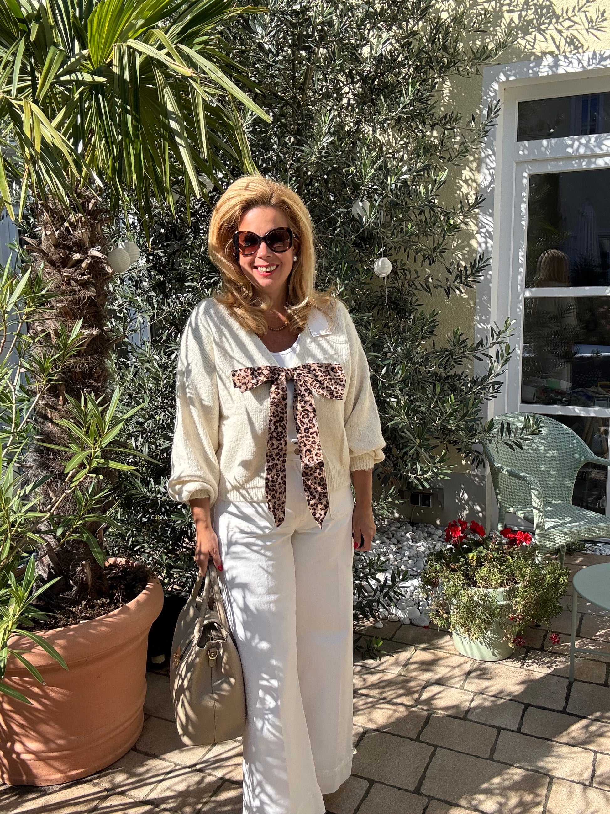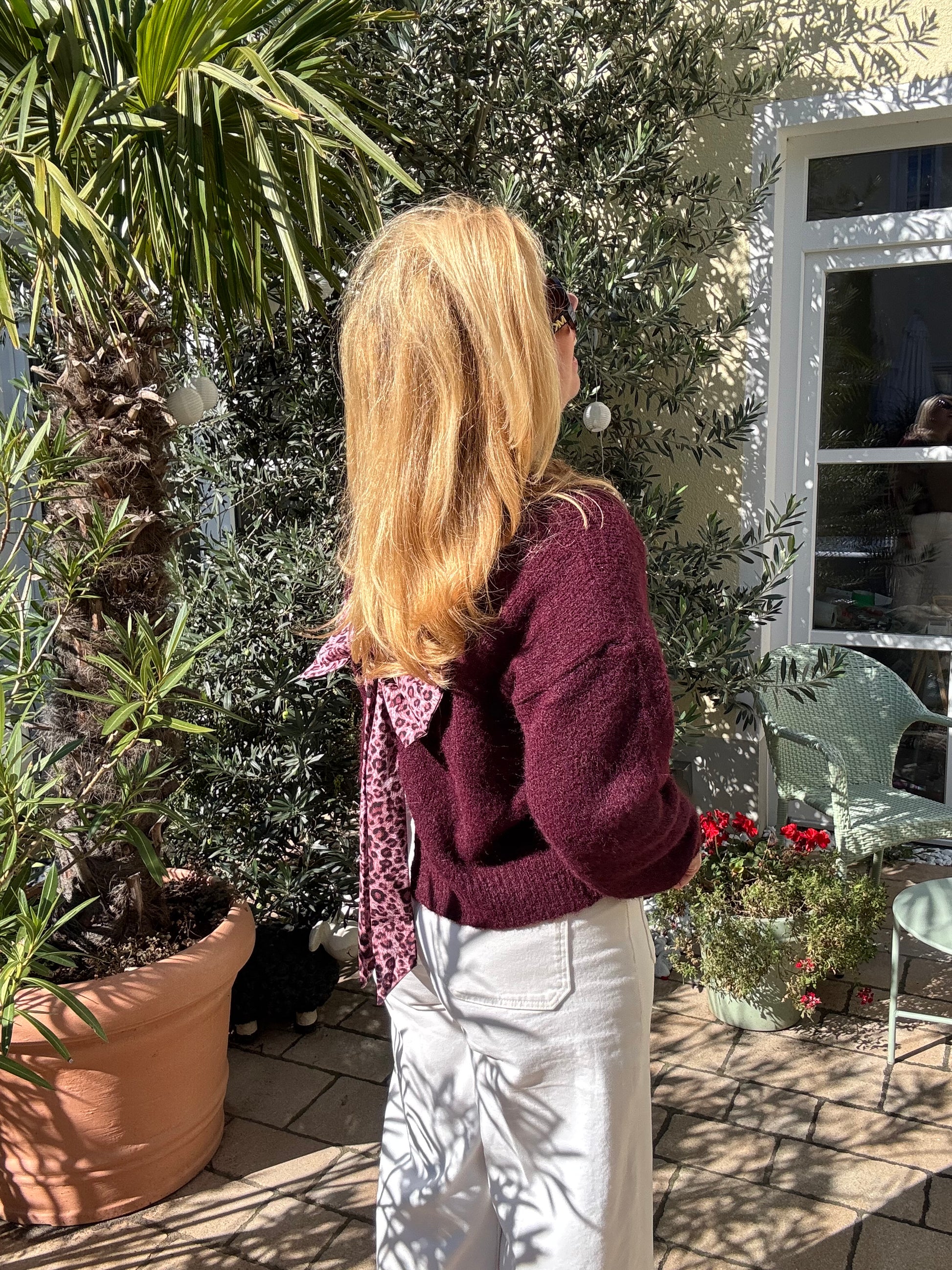 An der Seite der Schleife springt der Pulli auf, so dass Du ihn auch als Jäckchen tragen kannst.