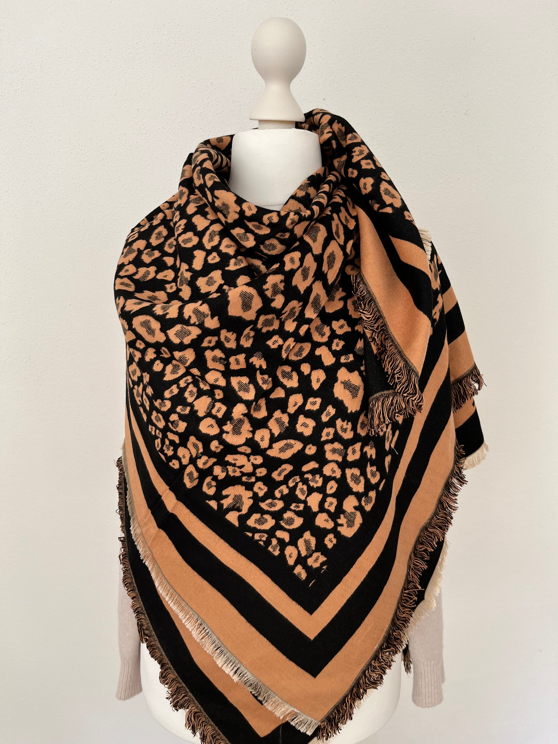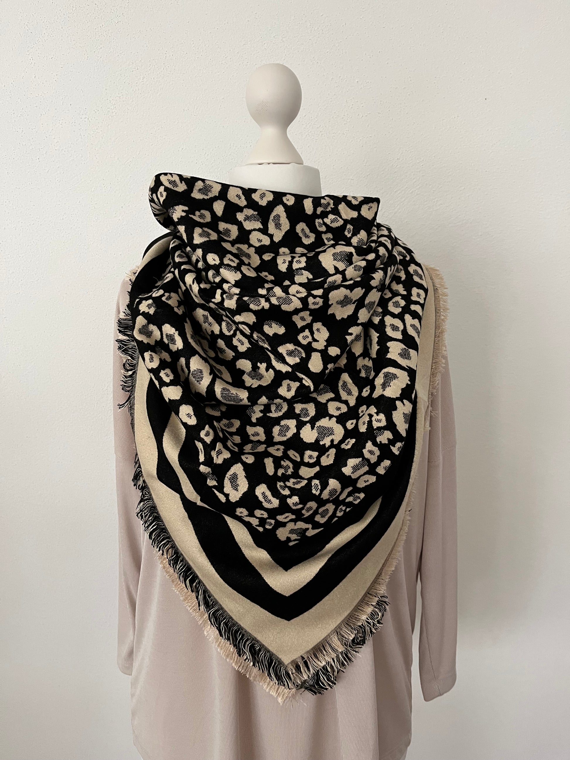Schal mit Leomuster und Schriftzug an der Seite in zwei Varianten