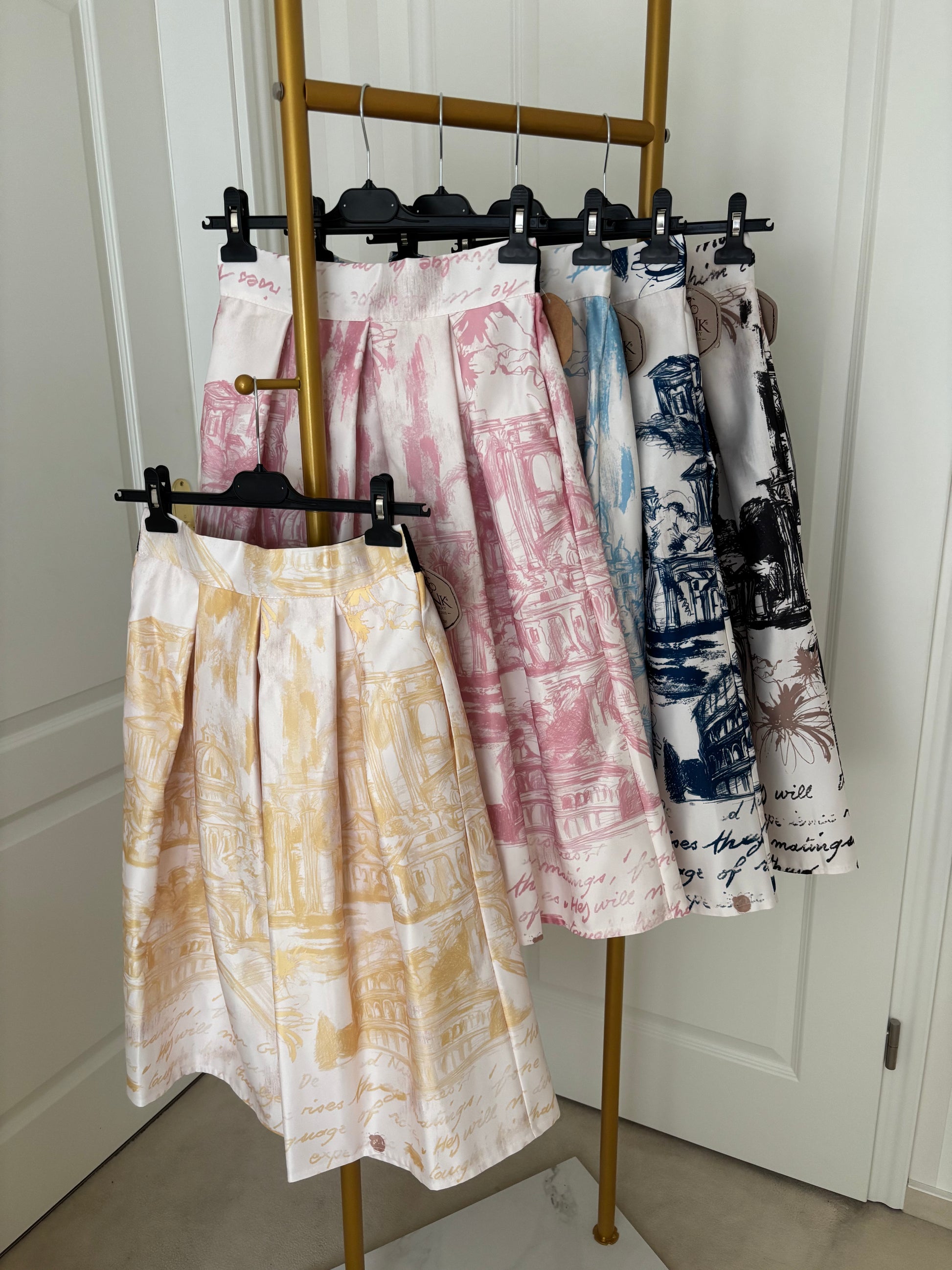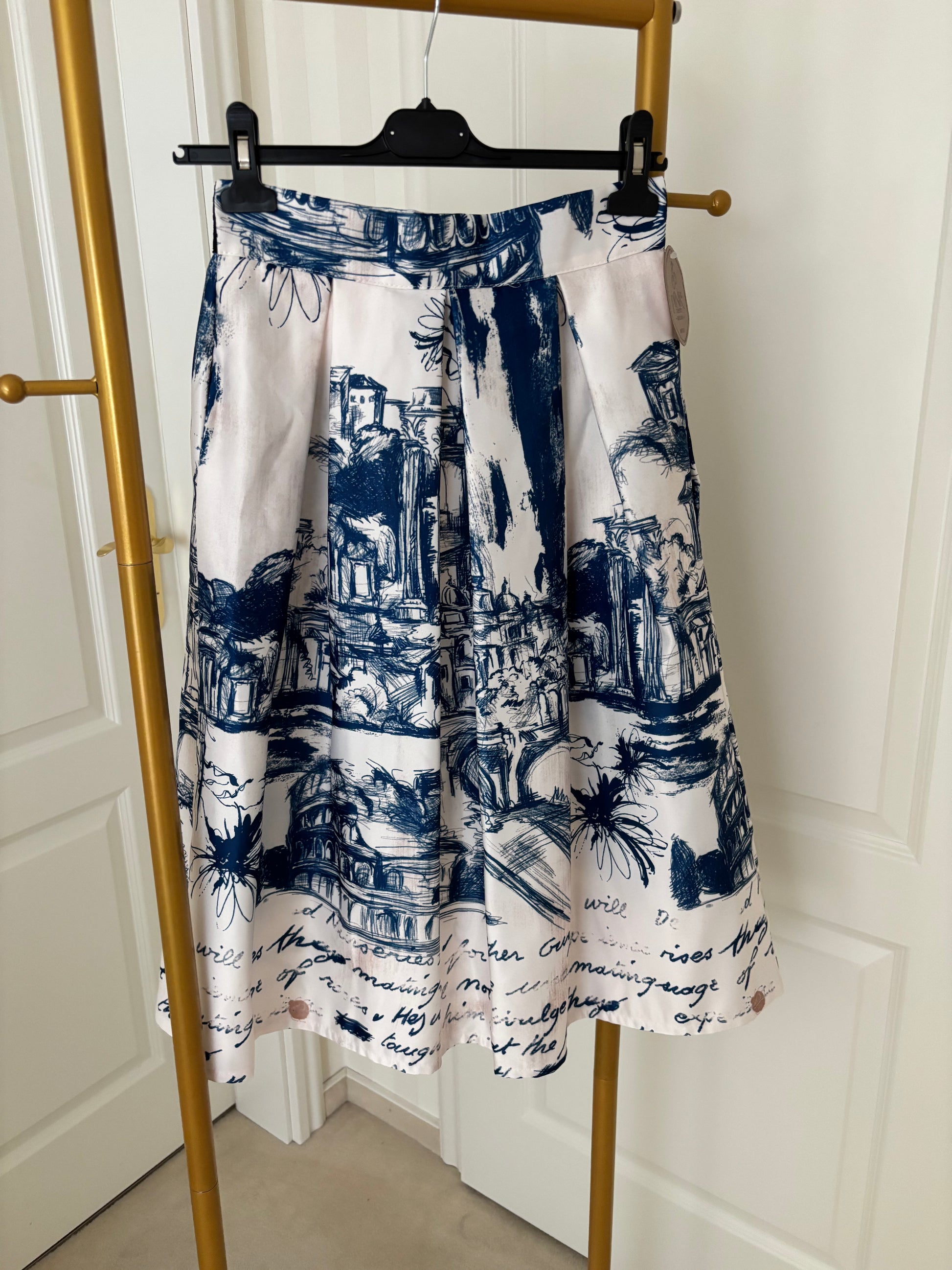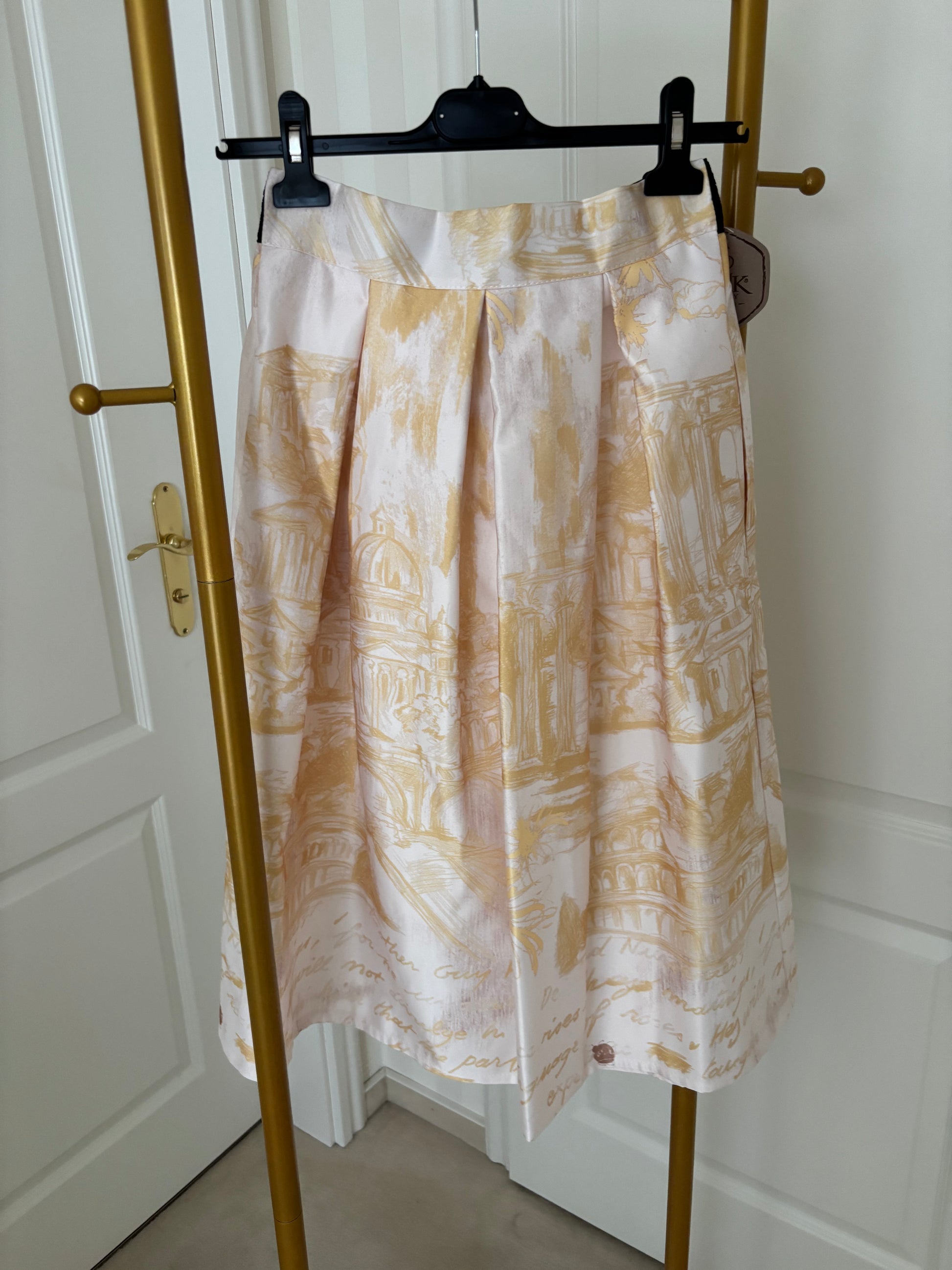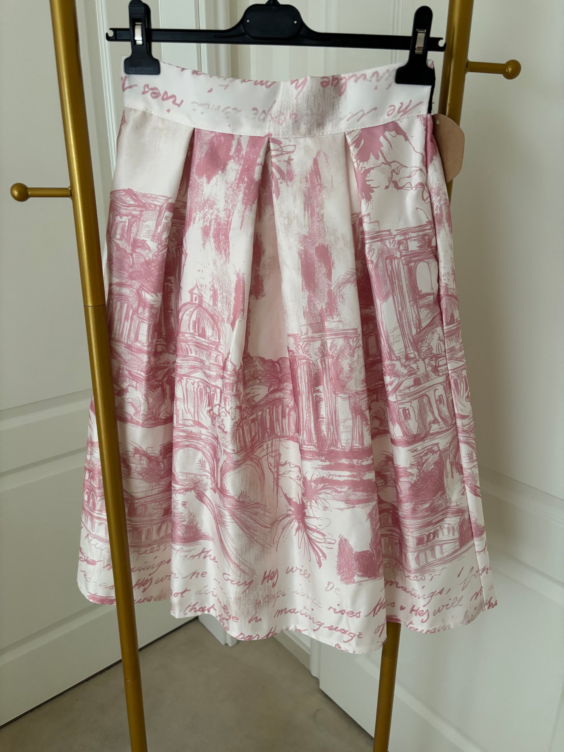 Traumhafter Rock mit wunderschönem Druck einer Stadtansicht in zarter Farbgebung.