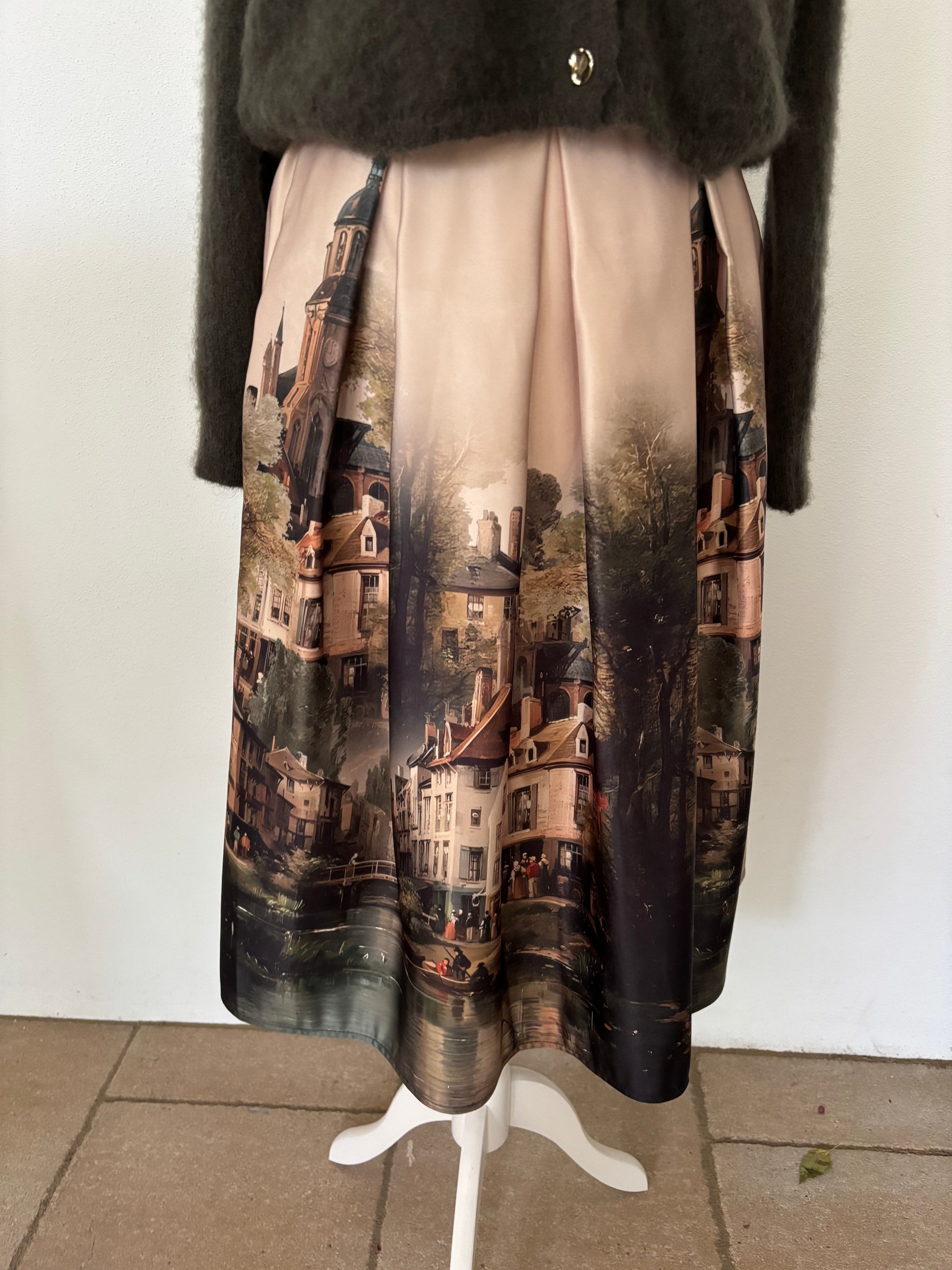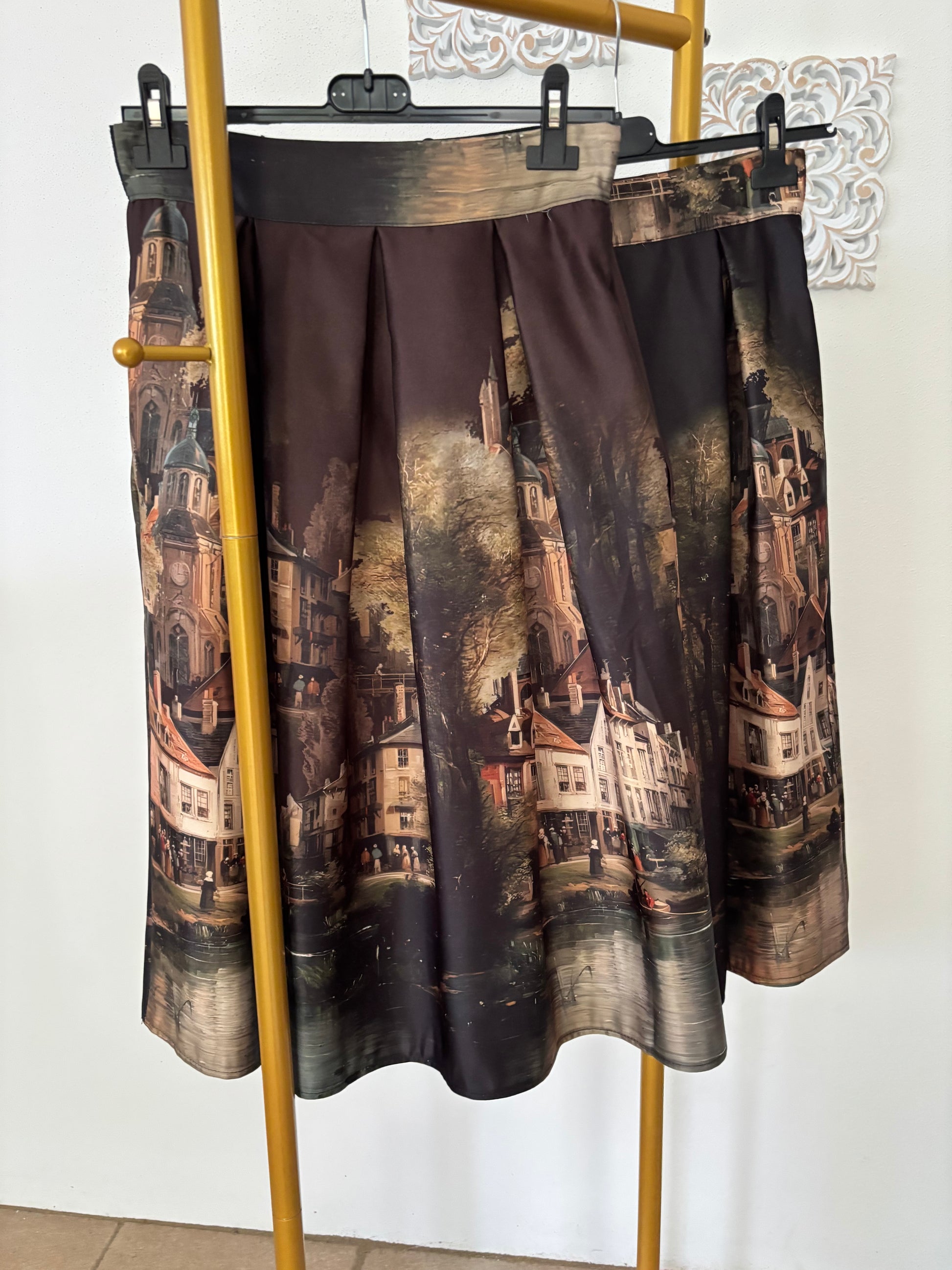 Der Rock ist im Vorderteil in Falten gelegt. Für den perfekten Sitz ist der Bund im Rückenteil mit einem breiten Gummiband versehen.
