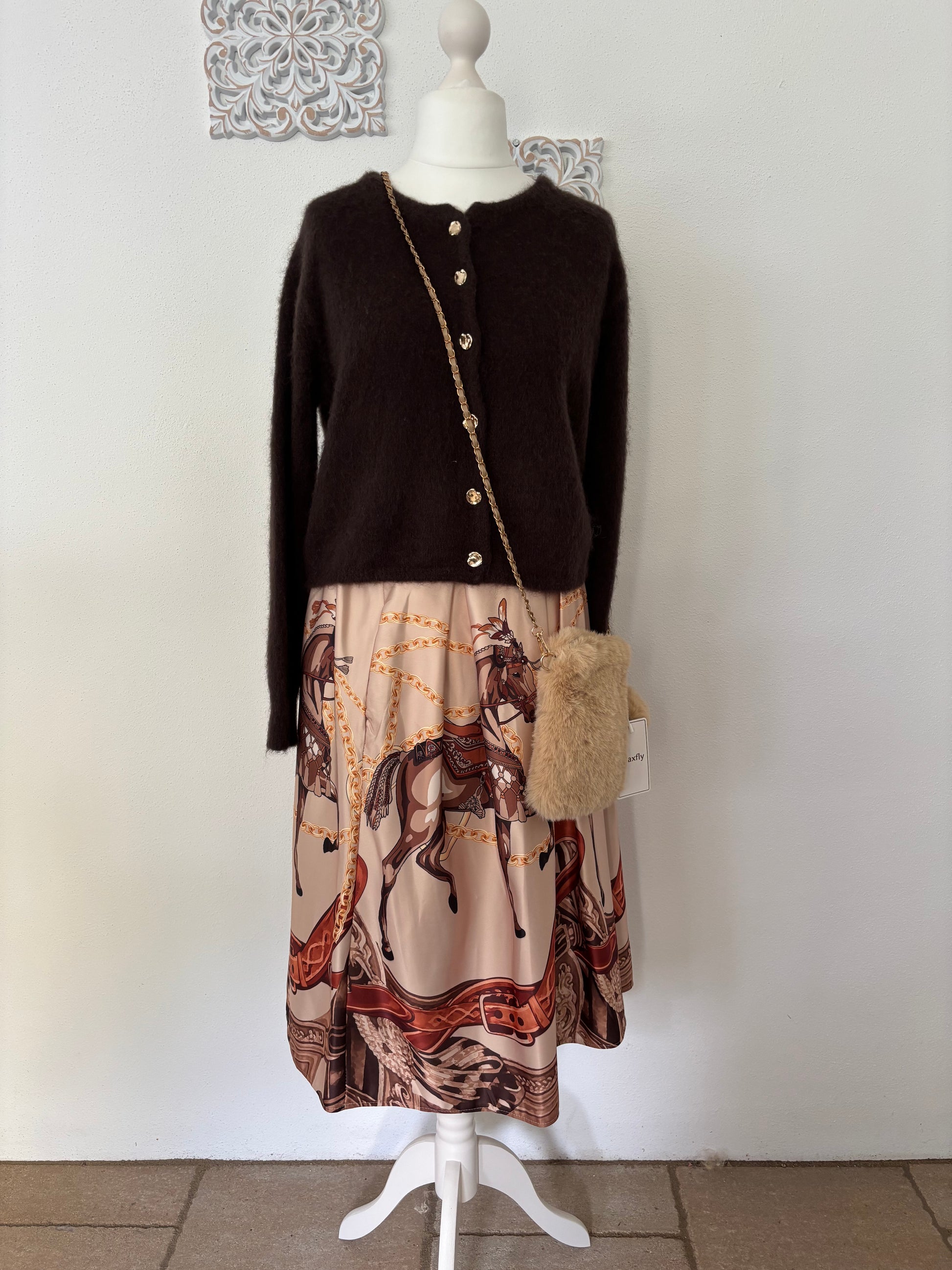 Vorne ist der Rock in Falten, gelegt, so dass er nicht aufträgt. Im Rückenteil ist er gekräuselt und sitzt dadurch perfekt.