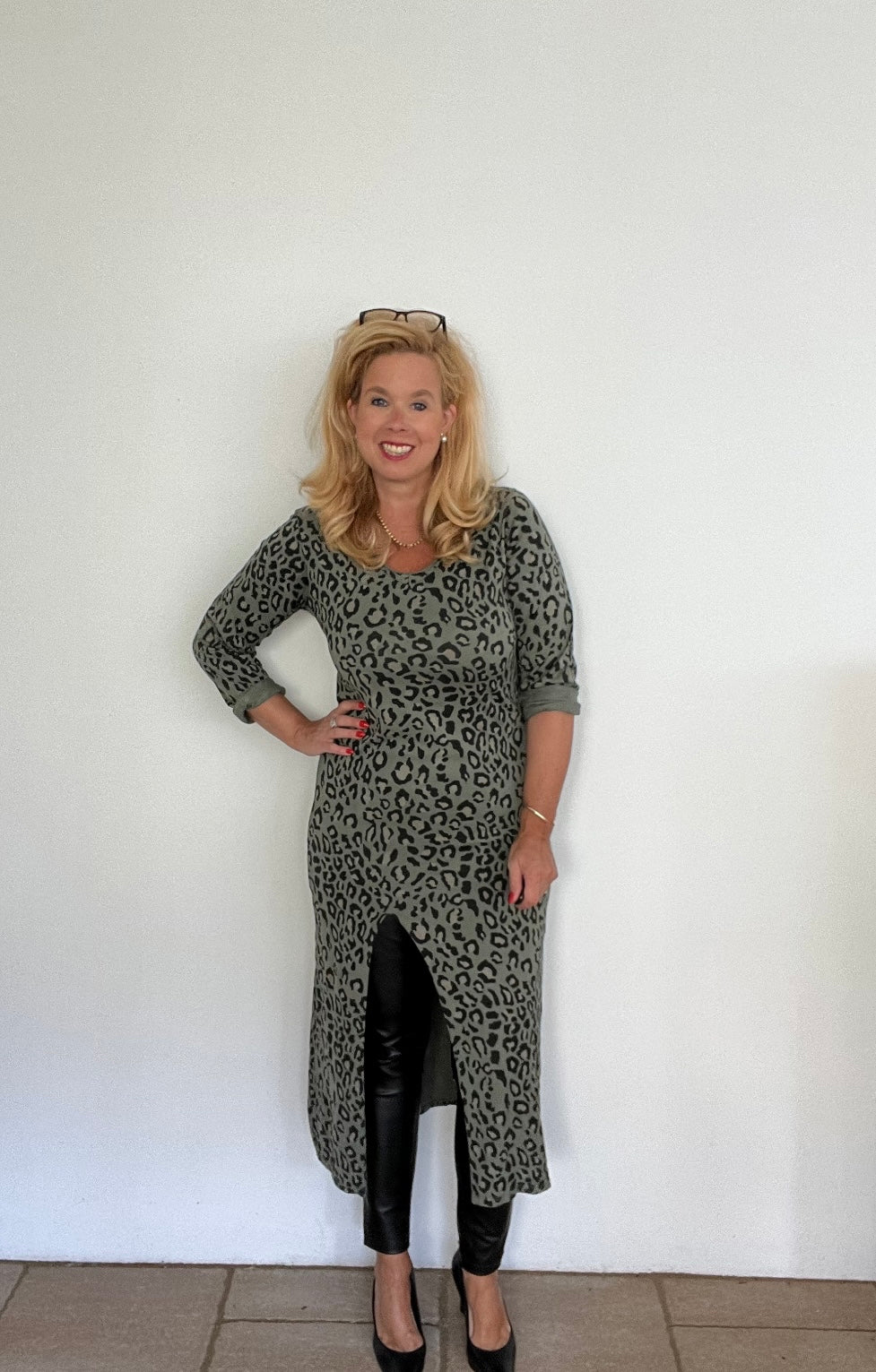 Cooles Leokleid, dass Du pur mit Highheels oder sportlich mit Leggings oder dicker Strumpfhose zu Boots stylen kannst.